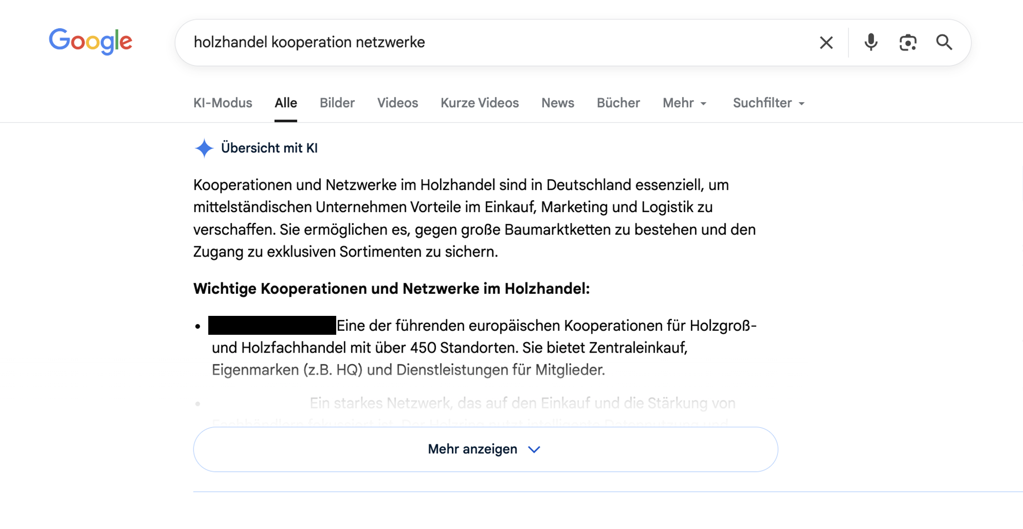 Suchergebnisse für Holzhandel Kooperation Netzwerke zeigen eine starke Dominanz von Informationsseiten und Branchenportalen.