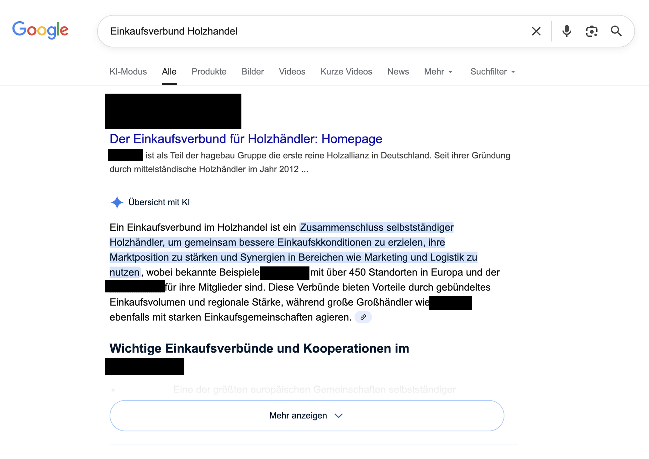 Google-Suchergebnisse für die Suchnafrage Einkaufsverbund Holzhandel.